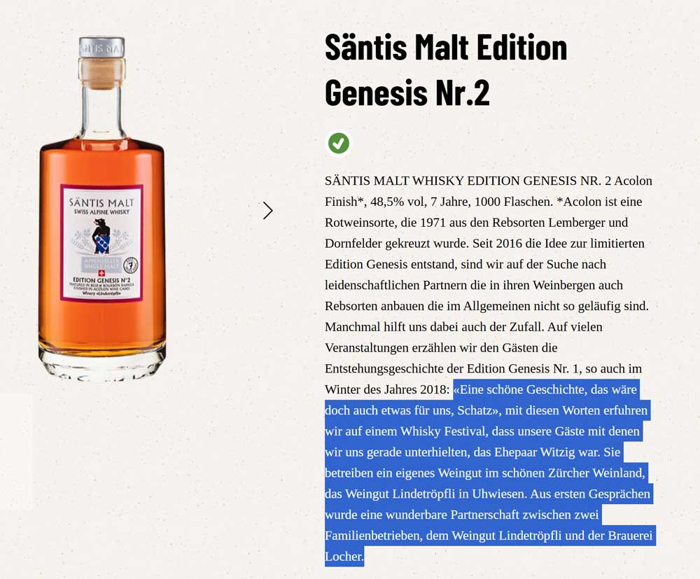 Zufällig entstand an einer Whisky-Veranstaltung eine wunderbare Partnerschaft zwischen zwei Familienbetrieben, dem Weingut Lindetröpfli, der Brauerei Locher und Säntis Malt.